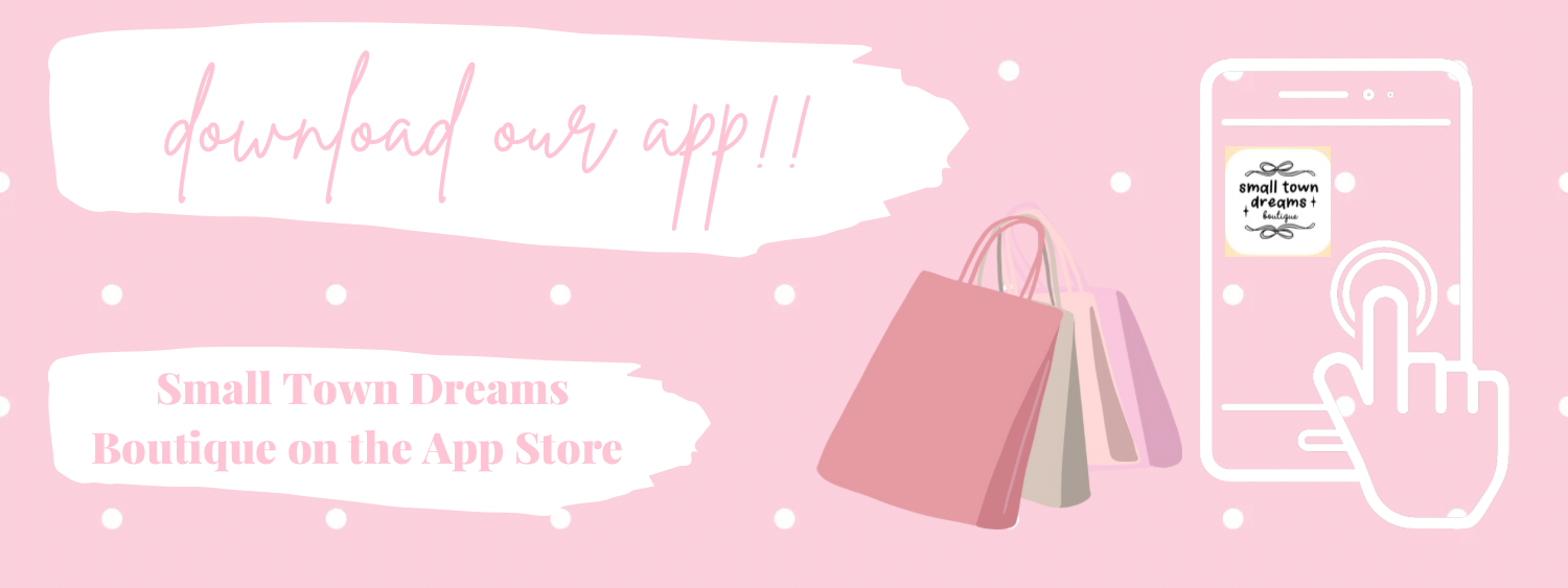 We’re so happy you’re here! At Small Town Dreams, every piece of women’s clothing and accessory is handpicked with love just for you. Your happiness means everything to us, and we can’t wait to be part of your style journey. Thank you for shopping small and dreaming big with us!