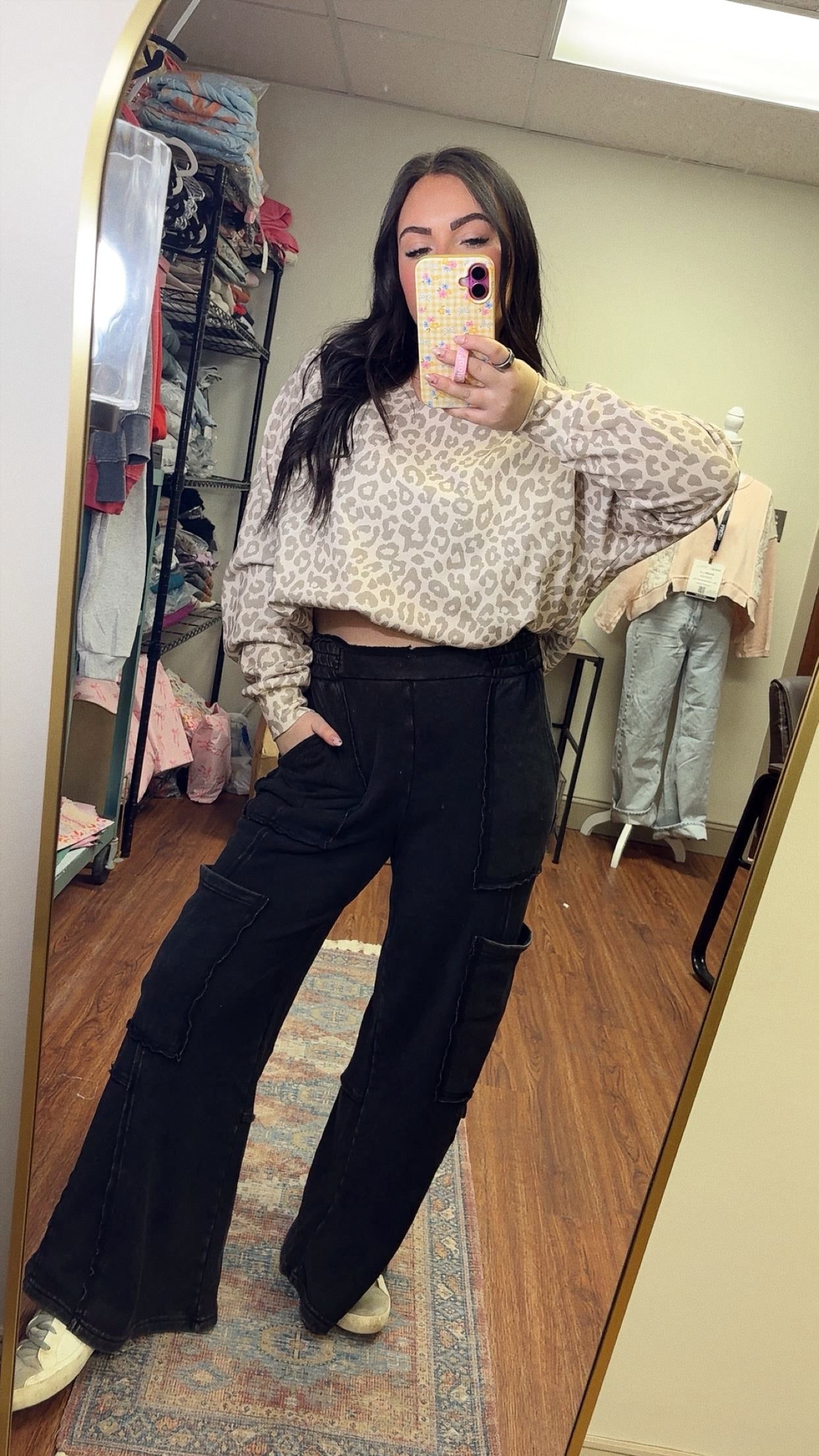 Super comfortable sweats, cargo pockets, wide leg fit, true to size with plenty of room