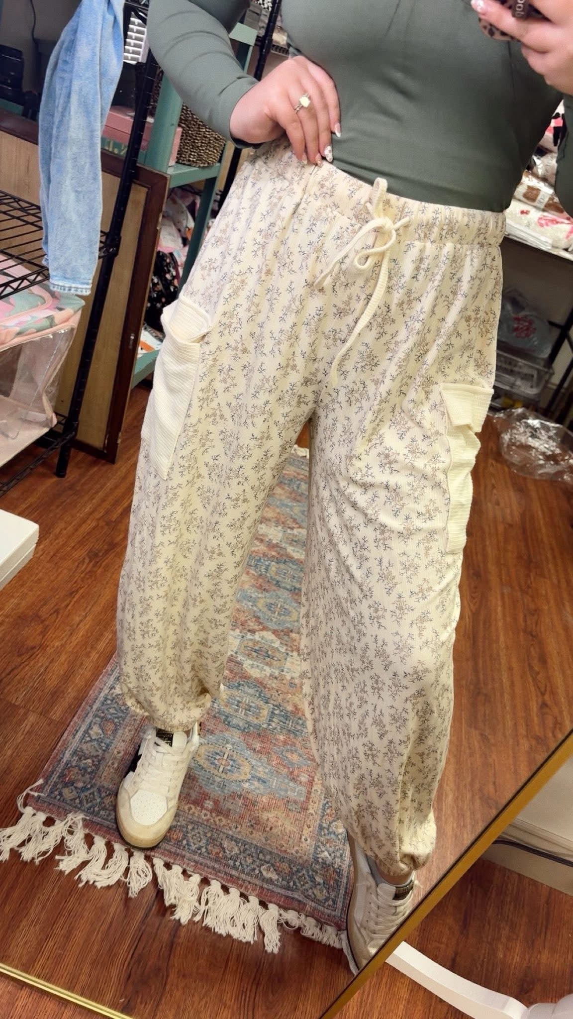 Super unique joggers, amazing quality, these are great for shorter girlies and taller just wearing them higher waisted or not! These have pretty floral detailing with cargo pockets, plenty of stretch and room in these.